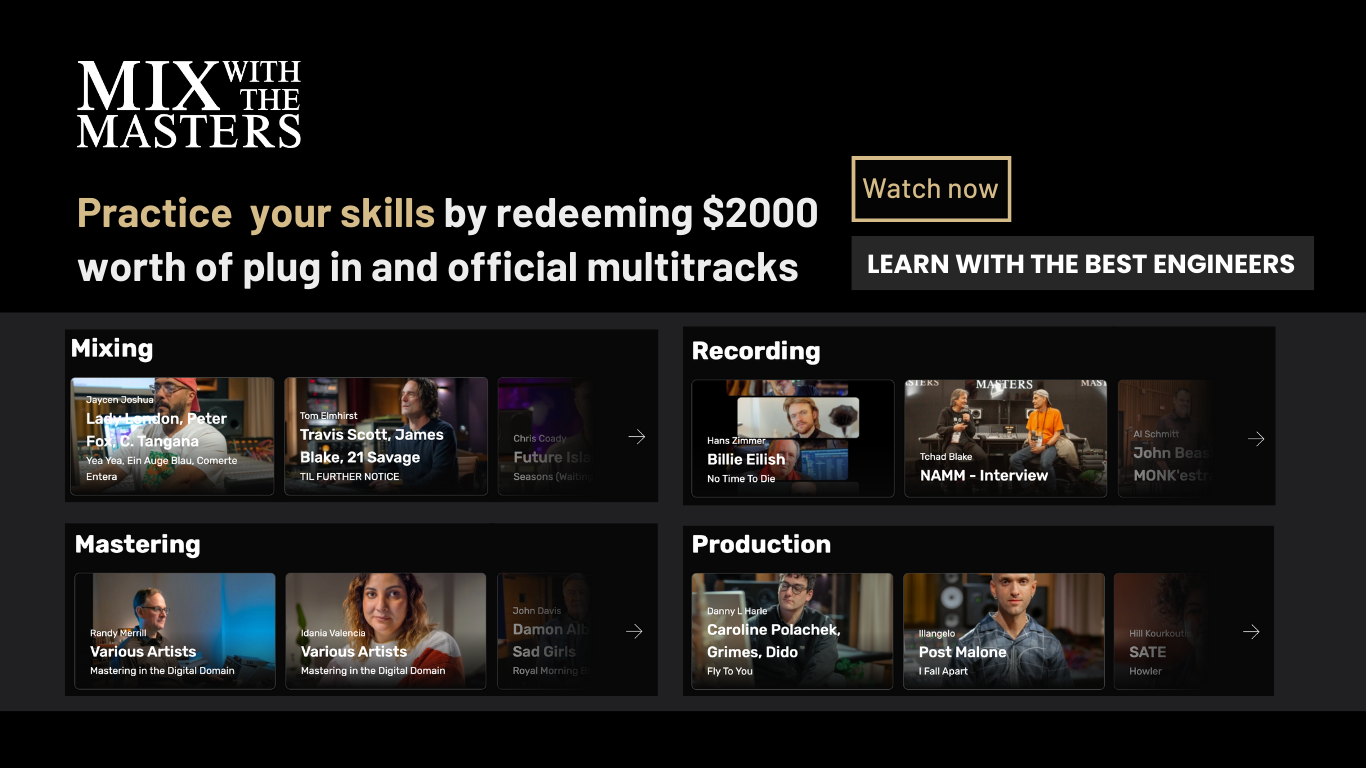 Online courses in recording, mixing, production, and mastering with top industry engineers.