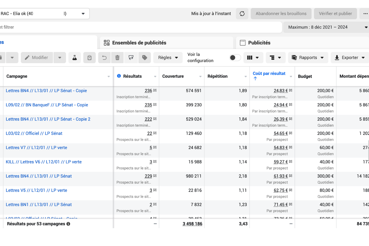 My mission: manage and launch advertising campaigns with a predefined budget, to achieve a target lead volume within a limited time, while being responsible for strategy and budget optimization.